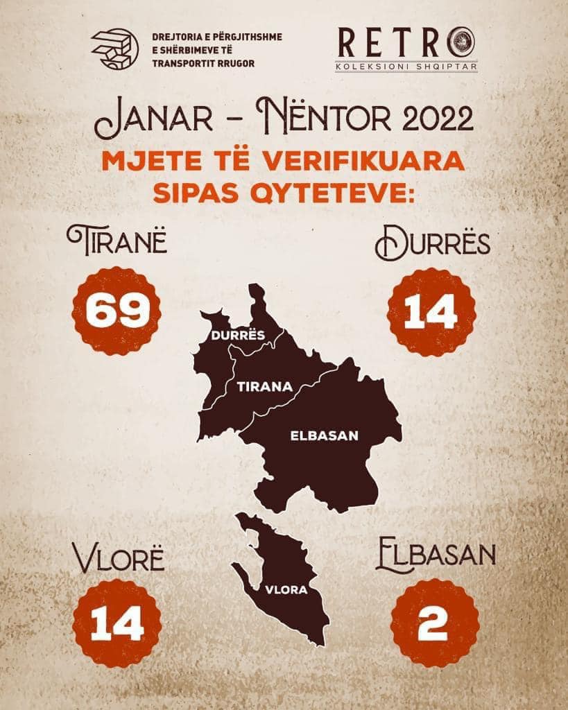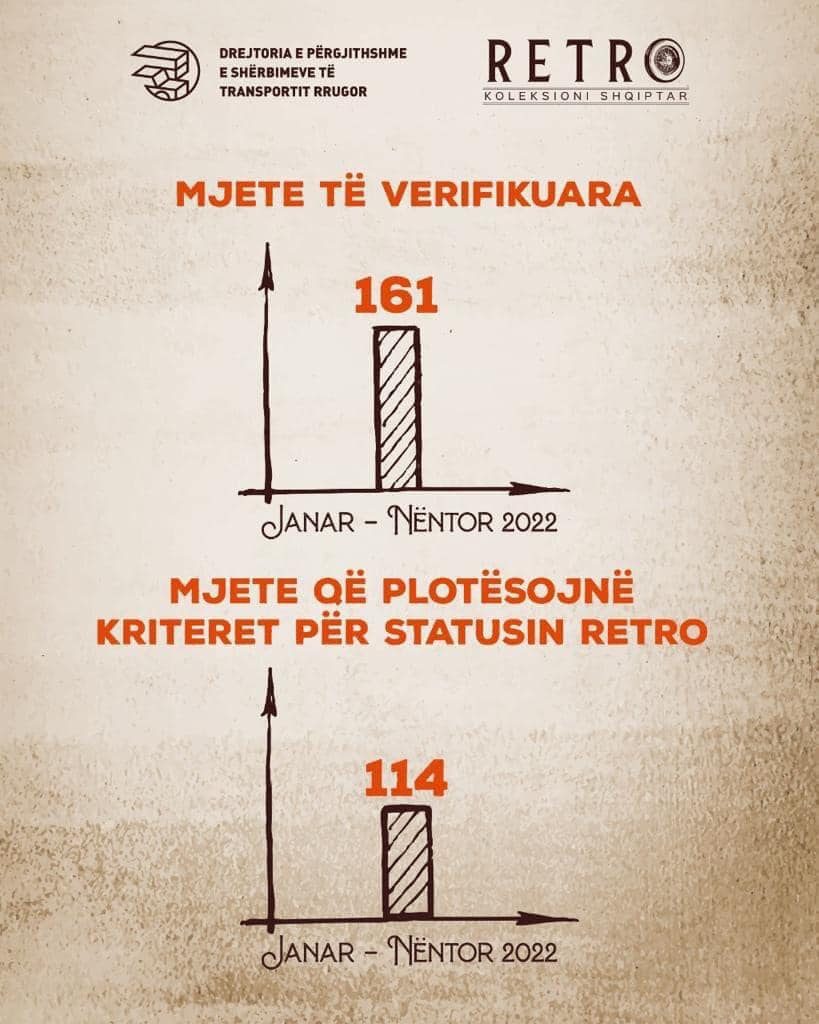 Gjatë periudhës kohore janar - nëntor 2022, janë verifikuar 161 mjete në total nga këto 105 automjete dhe 56 motomjete, ndërsa  gjatë periudhës kohore qershor 2020 - nëntor 2022, janë verifikuar plot 623 mjete të verifikuara në total dhe 456 mjete që plotësojnë kriteret për statusin Retro.