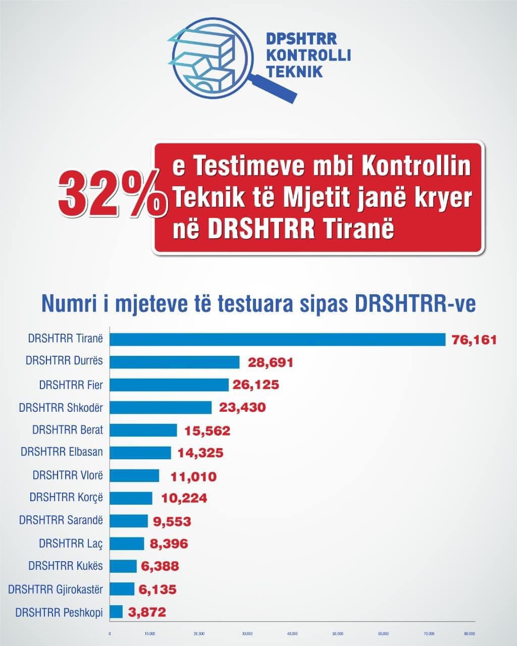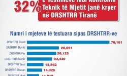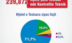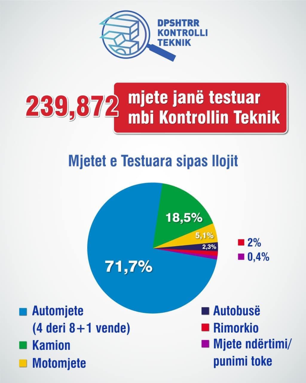 Në këtë 8-mujor, nga rinisja e shërbimit nën administrimin e DPSHTRR, janë paraqitur për testim mbi kontrollin teknik 239,872 mjete, nga të cilat:
