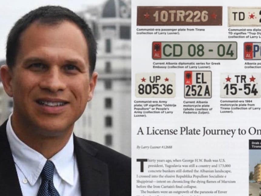 Larry Luxner, gazetari nga Tel Aviv, koleksionues i 550 targa nga mbi 100 shtete vizitë në DPSHTRR