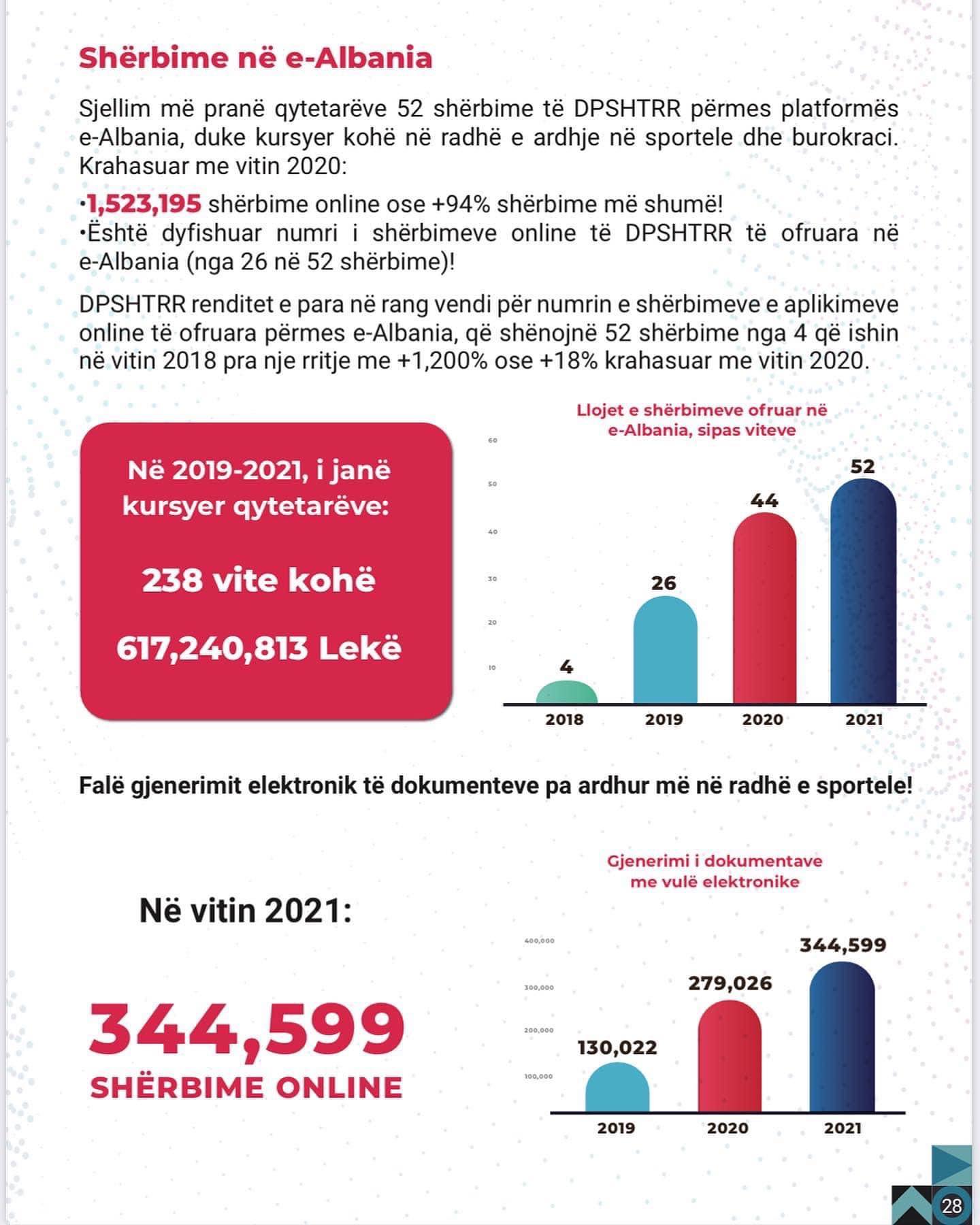 DPSHTRR renditet e para në rang vendi për numrin e shërbimeve e aplikimeve online të ofruara përmes e-Albania, që shënojnë 52 shërbime nga 4 që ishin në vitin 2018, pra me një rritje me +1,200%!