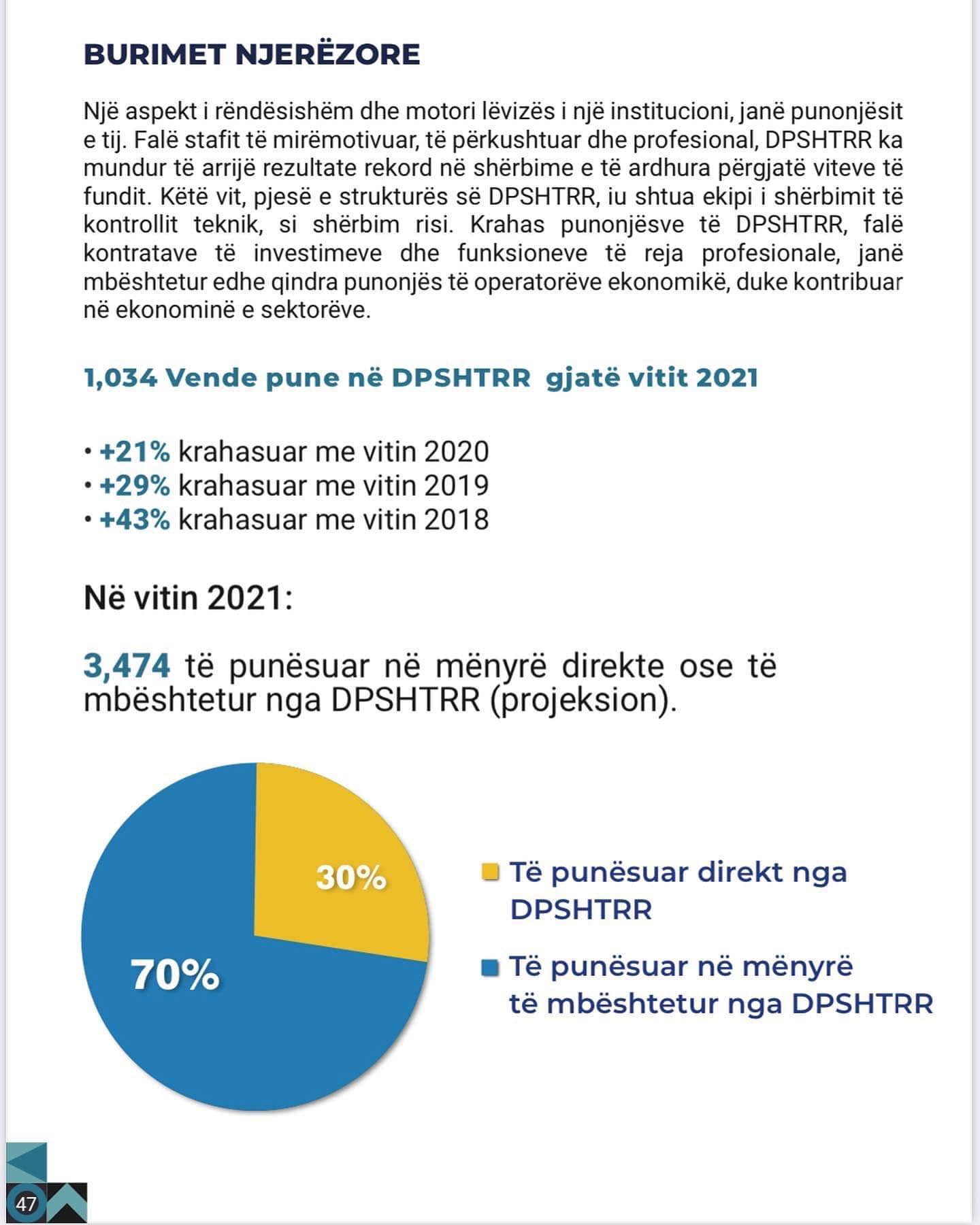 3,474 të punësuar në mënyrë direkte ose të mbështetur nga DPSHTRR për vitin 2021!
