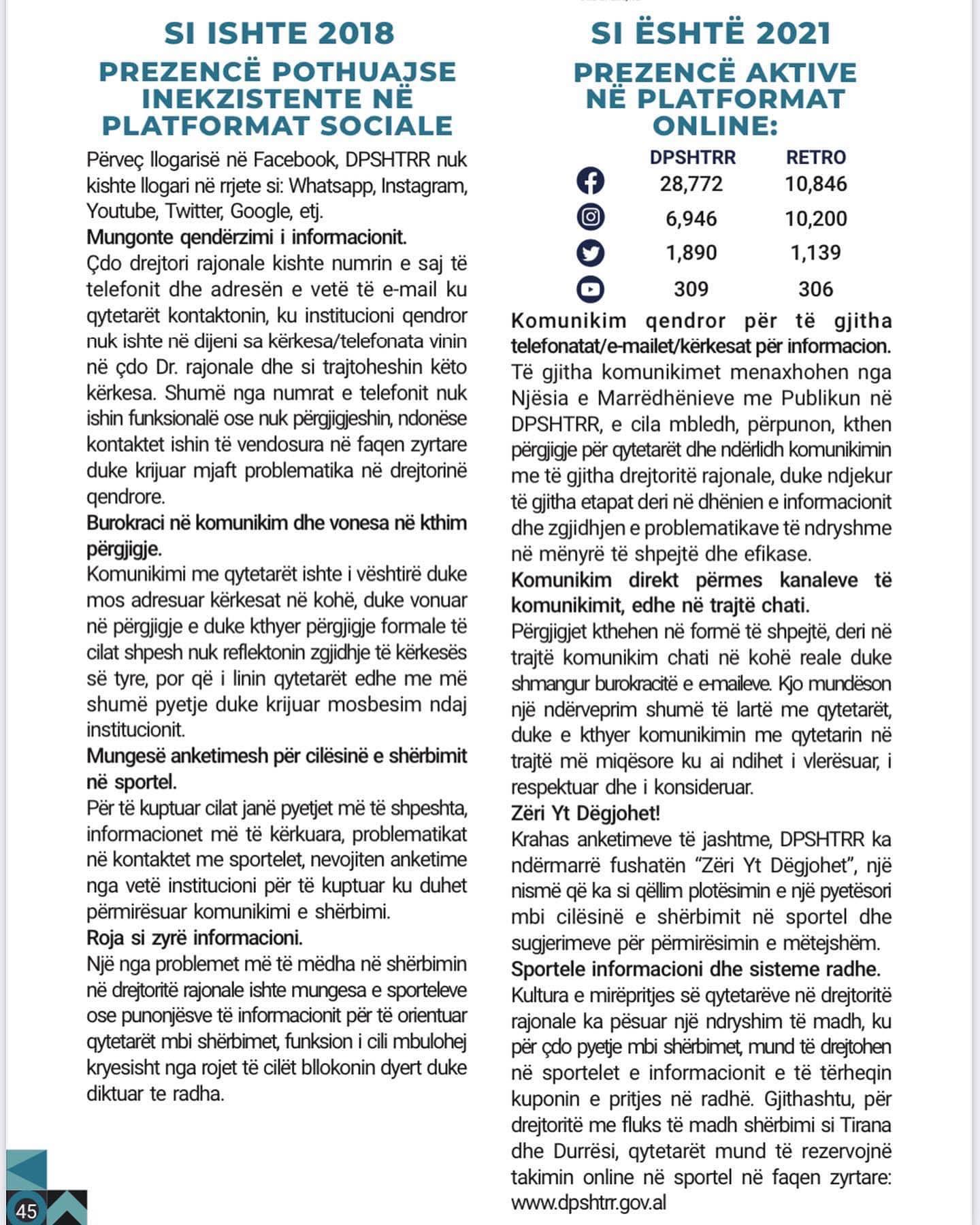 •Është dyfishuar numri i shërbimeve online të DPSHTRR të ofruara në e-Albania (nga 26 në 52 shërbime)!