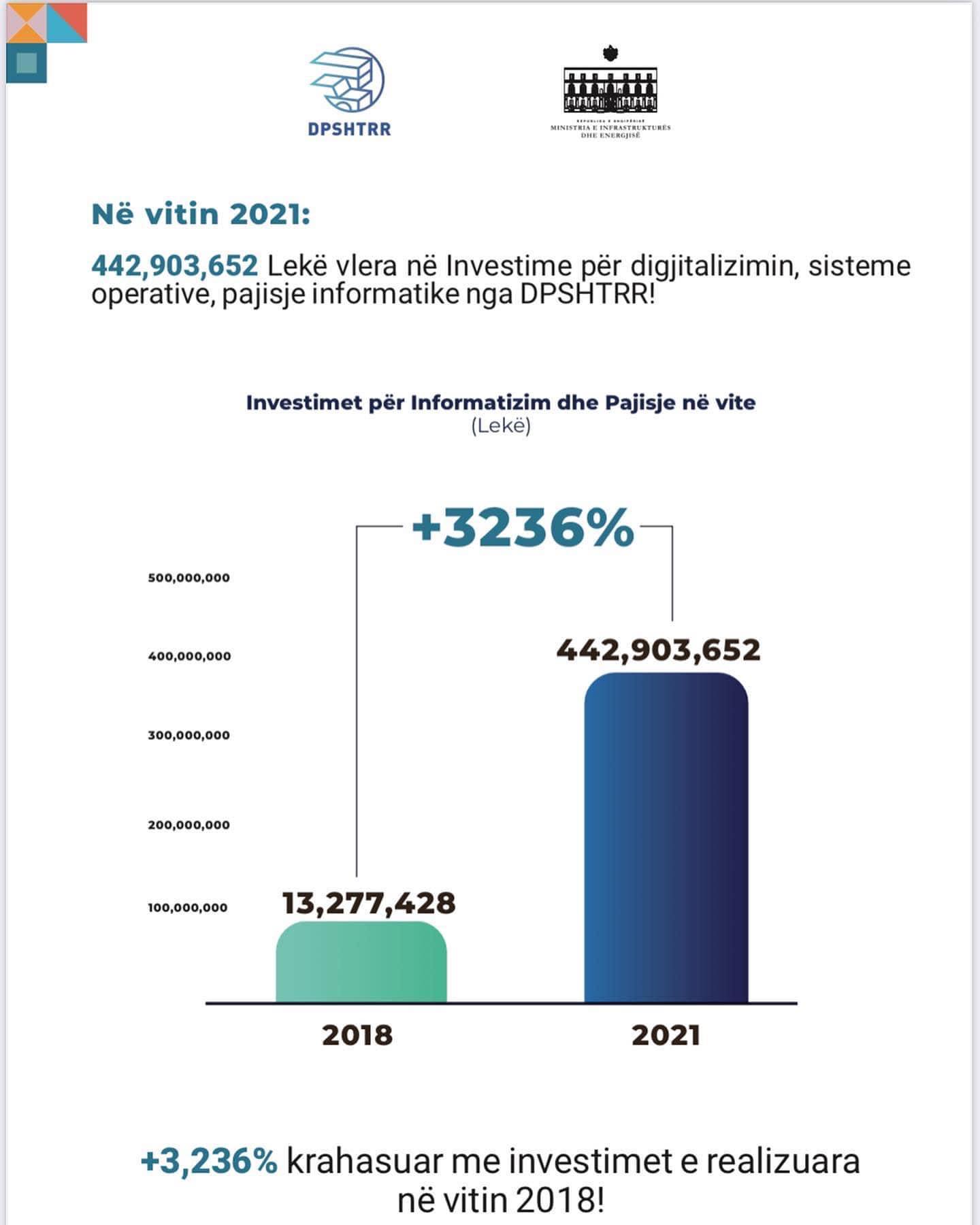 DPSHTRR investoi në 2021 për digjitalizimin, sistemet operative e pajisjet informatike +3,236% krahasuar me investimet e realizuara në vitin 2018!