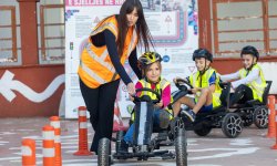 Fëmijët patën mundësinë të mësojnë rregullat e sigurisë në rrugë dhe mënyrat më të mira për t’u sjellë të sigurt gjatë kalimeve në rrugë. Pas teorisë, ata i vunë në praktikë njohuritë e reja në një qark të posaçëm të sigurisë rrugore.