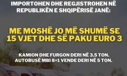 • Për kategorinë mjedisore EURO 3 e sipër dhe me moshë jo më shumë se 15 vjet lejohet të importohen kamionë dhe furgonë deri në 3.5 ton dhe autobusë mbi 8+1 vende deri në 5 ton, me vit prodhimi 2009 e lart.