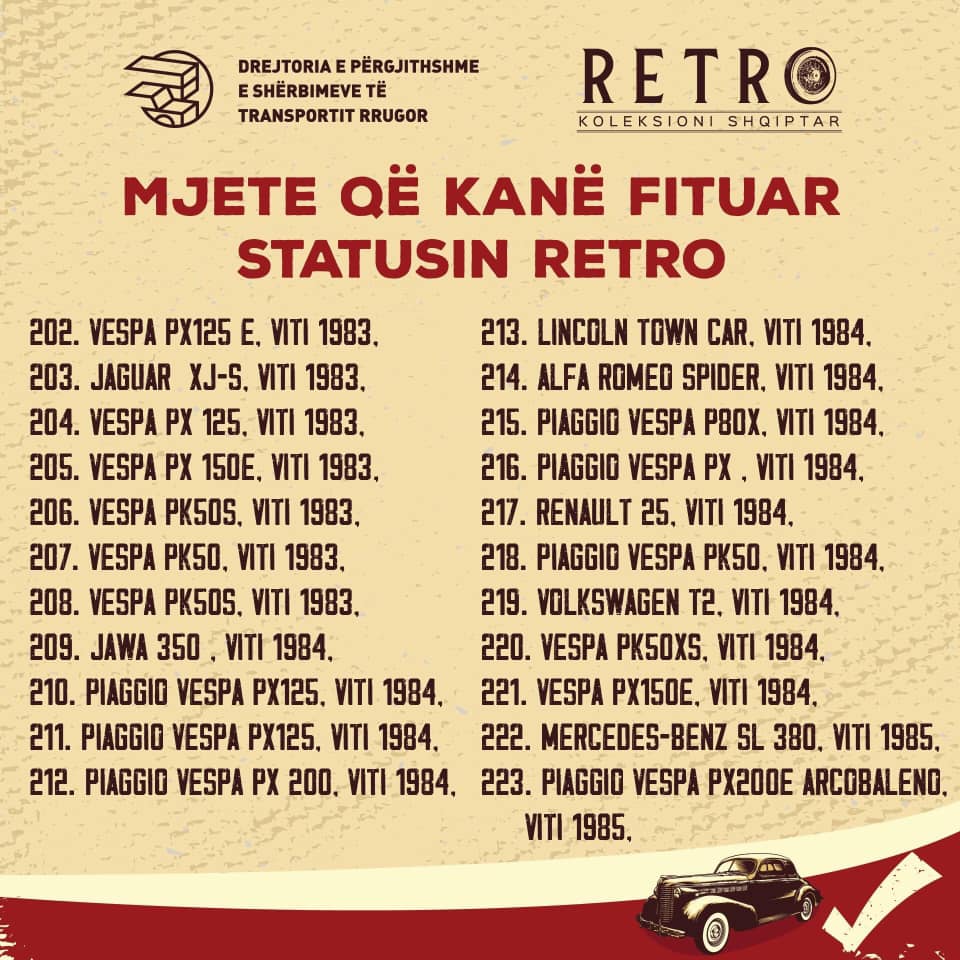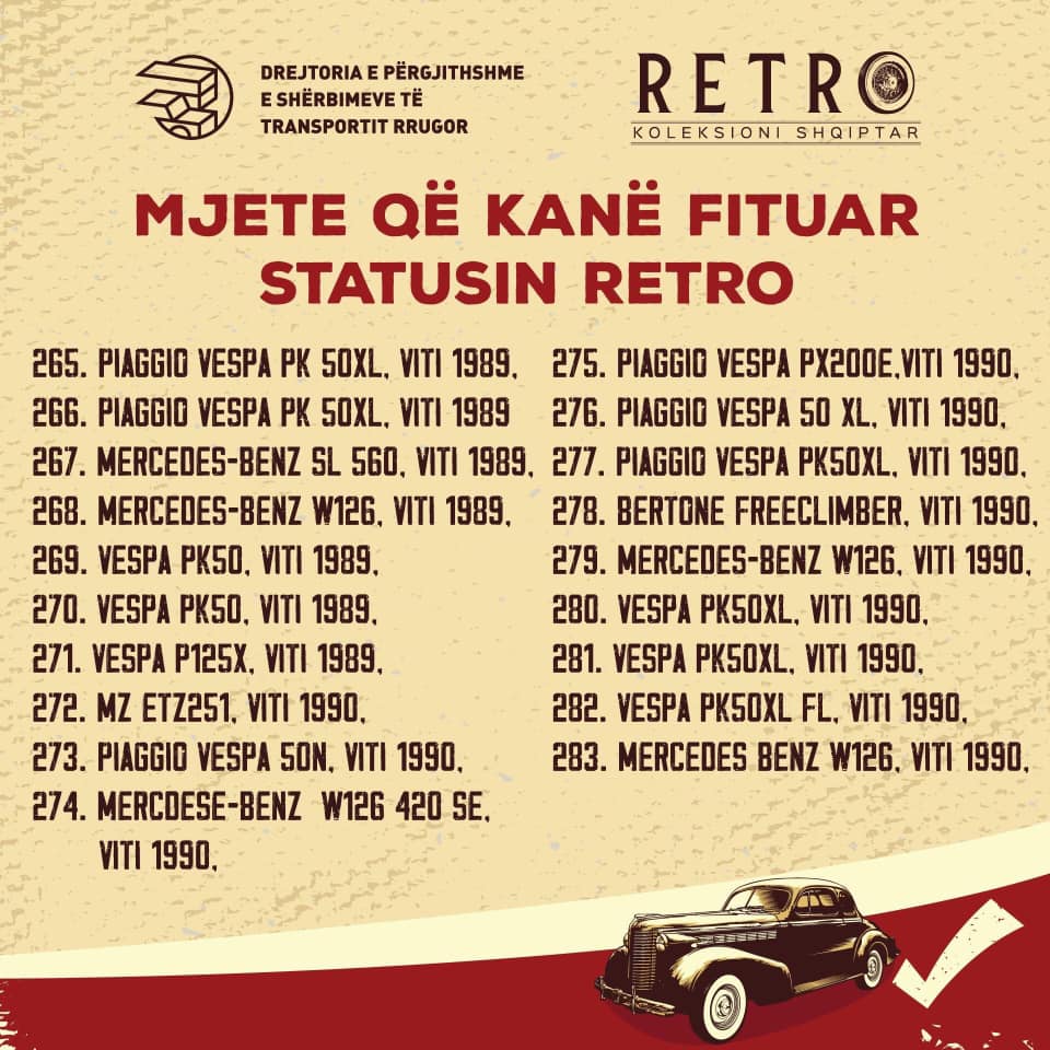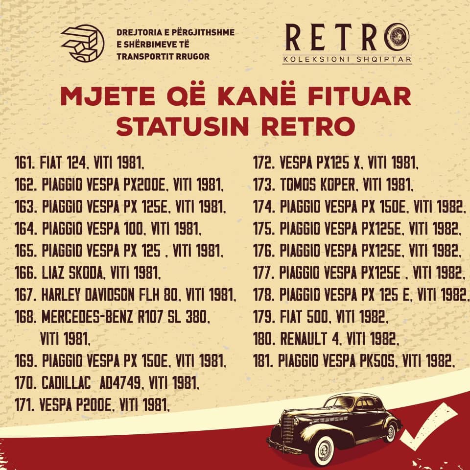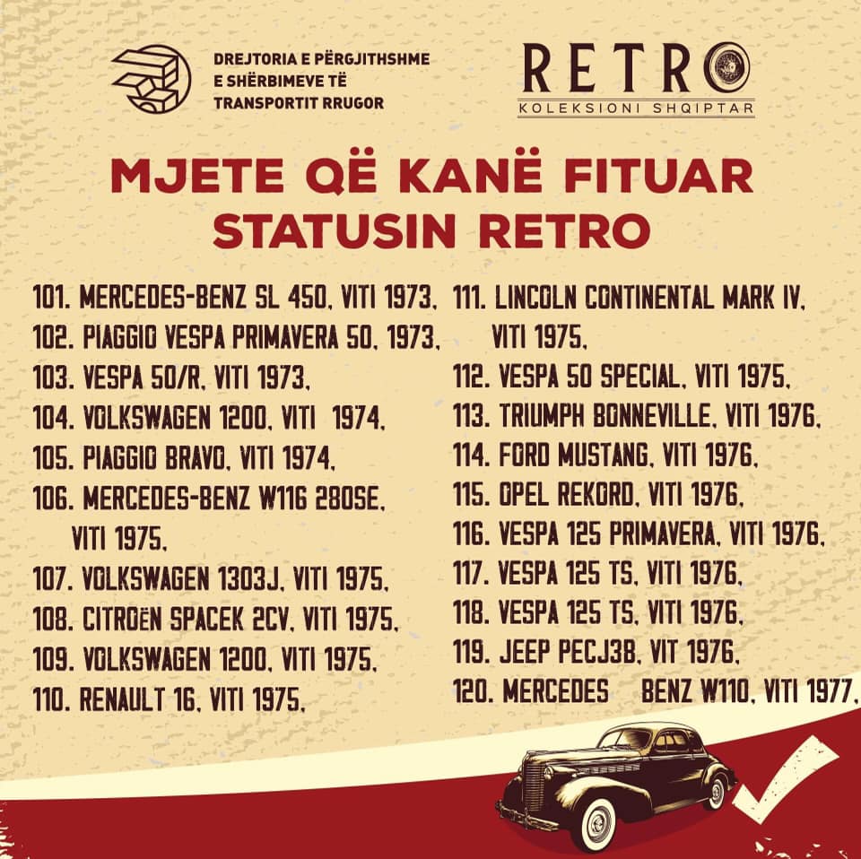 Një vit më parë Komisioni Vlerësues bashkë me grupin mbikqyrës nisën mbledhjen e mozaikut të automotorizimit shqiptar ndër vite. Çdo ditë, koleksionistë dhe të apasionuar mbas mjeteve të vjetra dhe me vlera kulturore, historike, plotësojnë inventarin vendas dhe importet e dëshiruara të të pasionuarve drejt krijimit të Regjistrit Shqiptar të Mjeteve Historike.