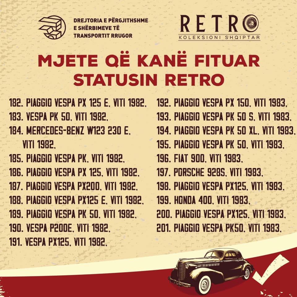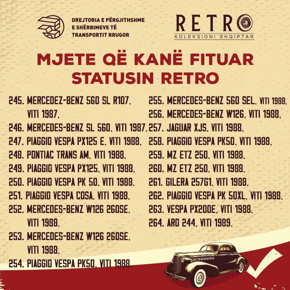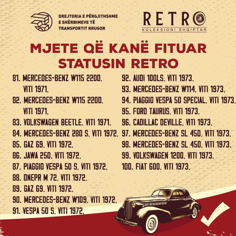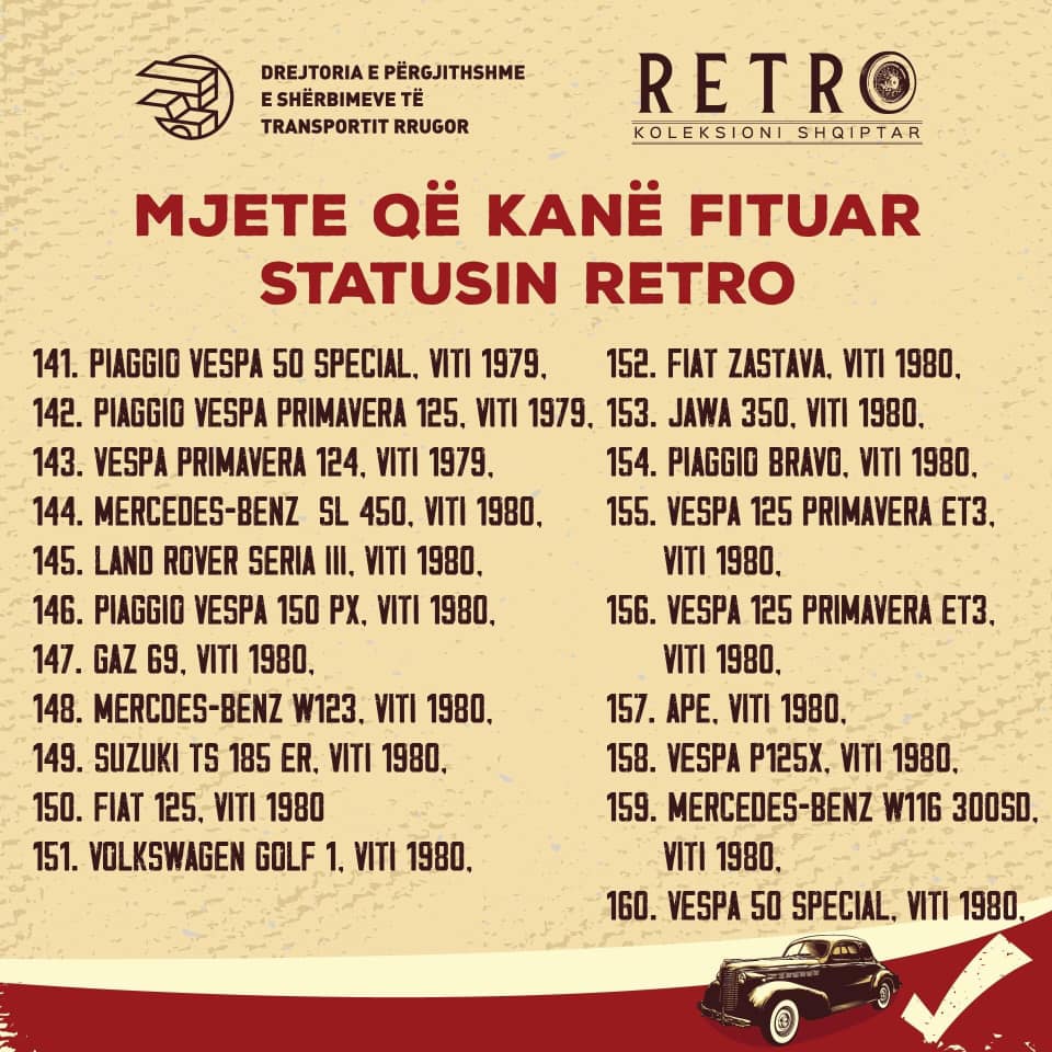 Një vit më parë Komisioni Vlerësues bashkë me grupin mbikqyrës nisën mbledhjen e mozaikut të automotorizimit shqiptar ndër vite. Çdo ditë, koleksionistë dhe të apasionuar mbas mjeteve të vjetra dhe me vlera kulturore, historike, plotësojnë inventarin vendas dhe importet e dëshiruara të të pasionuarve drejt krijimit të Regjistrit Shqiptar të Mjeteve Historike.