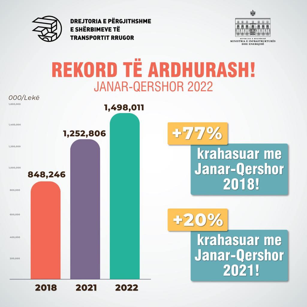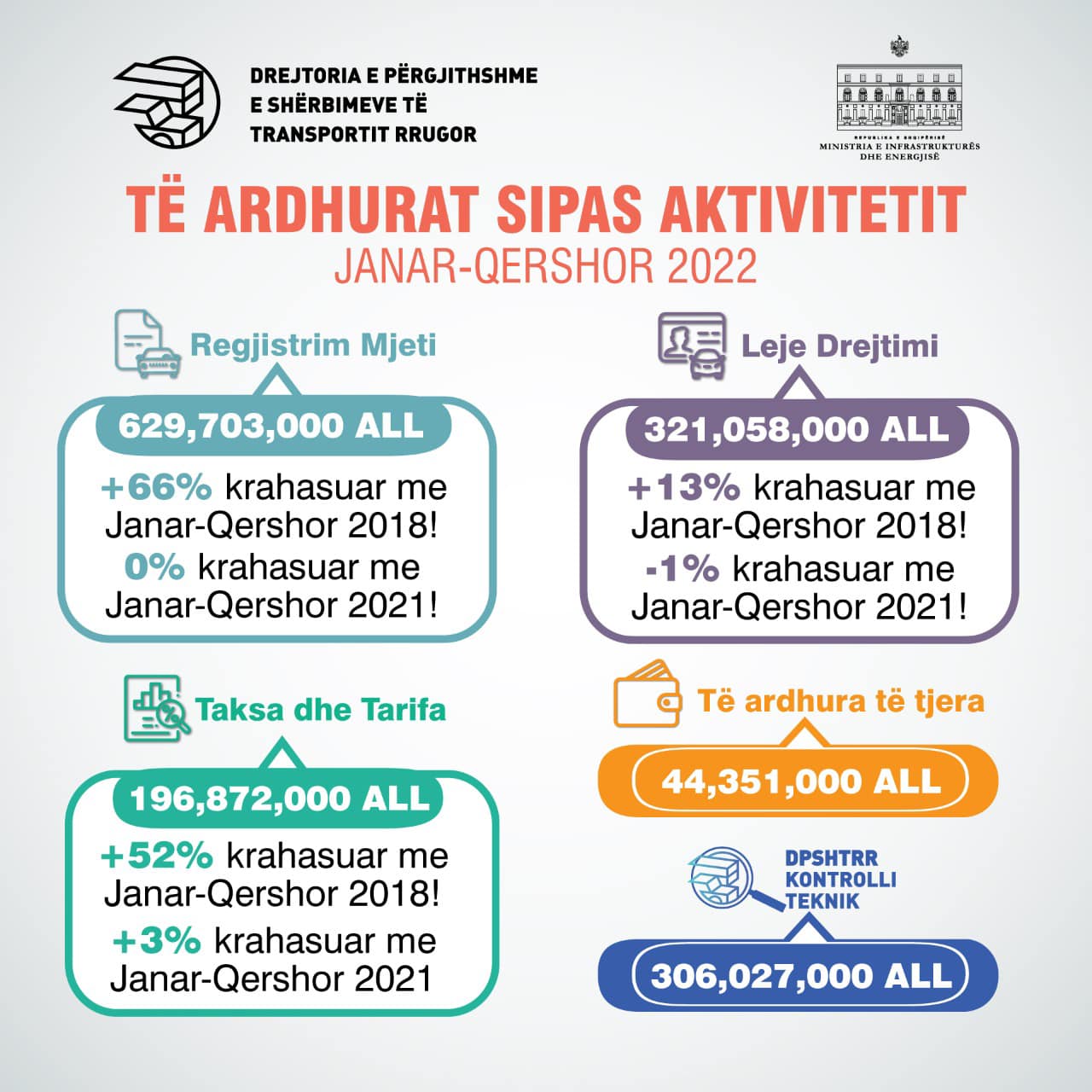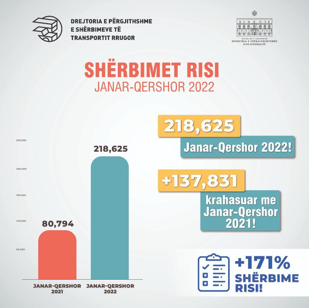 Drejtoria e Përgjithshme e Shërbimeve të Transportit Rrugor S përmes shërbimeve risi, rritjes së portofolit të shërbimeve dhe uljes së kohës së kryerjes së shërbimeve (rritjes së numrit të praktikave për sportel)  ka arritur rezultate rekord dhe për 6-mujorin e parë të vitit 2022.