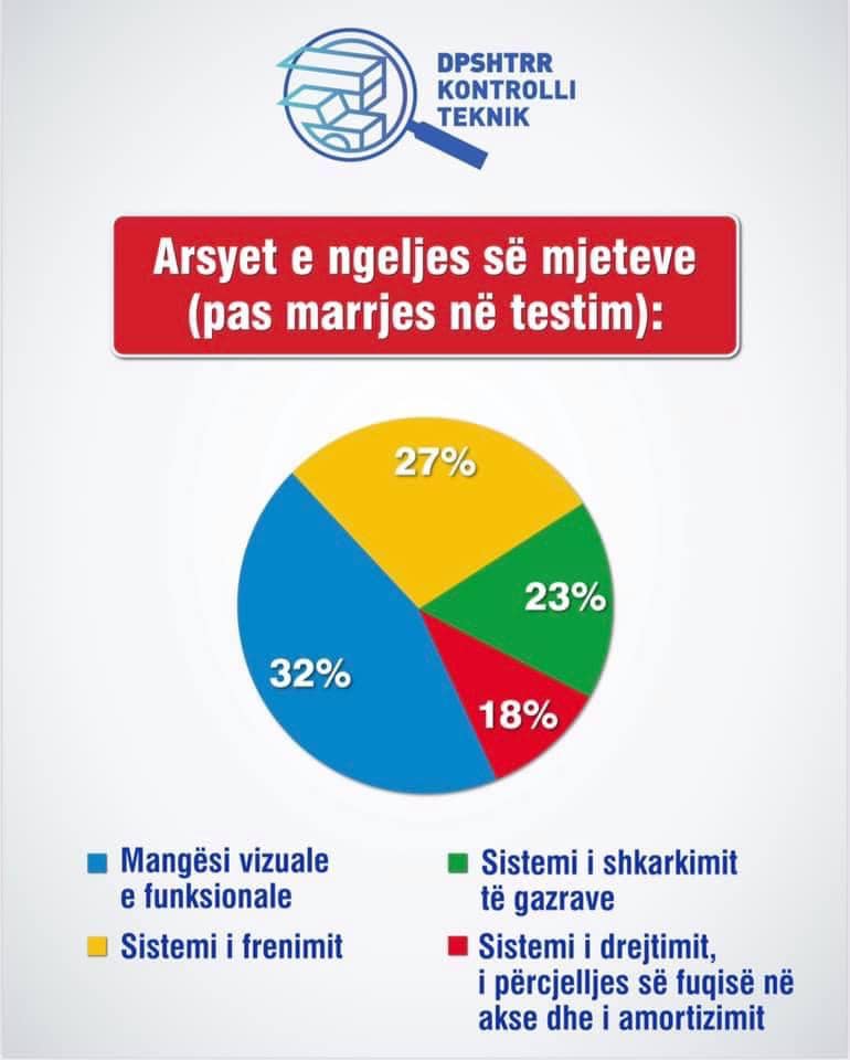 180 (5.2%) mjete të refuzuara, u ndalohet qarkullimi (xhama të dëmtuar, goma të tejkonsumuara, defekte të rënda në sisteme, pamje e jashtme jo e rregullt)!