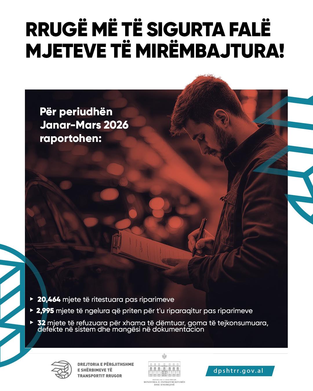 -  32 mjete të refuzuara për xhama të dëmtuar, goma të tejkonsumuara, defekte në sistem dhe mangësi në dokumentacion.