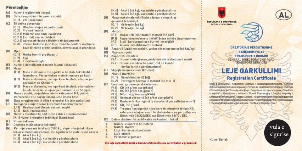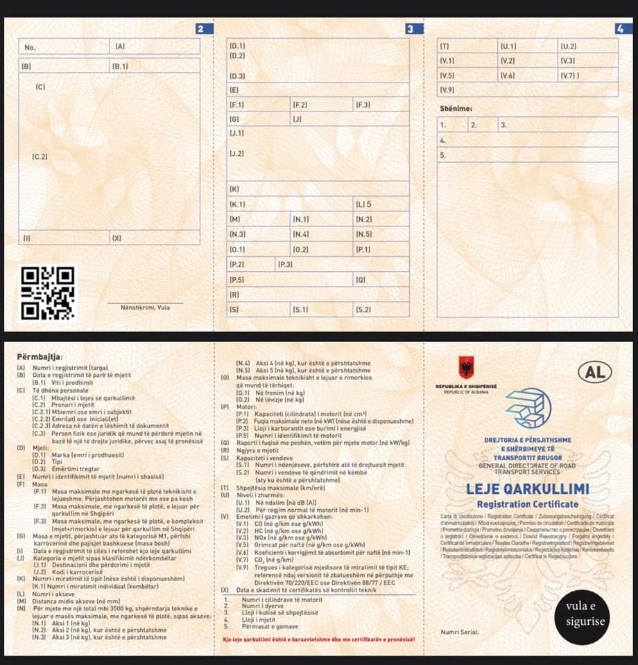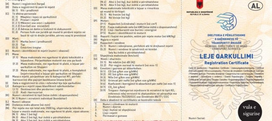 - Certifikatë e Kontrollit Teknik të Sigurisë për Mjetet Motorike, Rimorkiot ose Gjysëm Rimorkiot, ndërmjet dy ose më shumë vendeve anëtare ECMT/CEMT