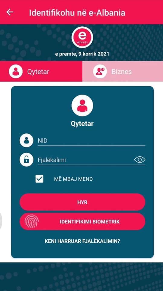 • Identifikohuni si qytetar në portalin e-albania;