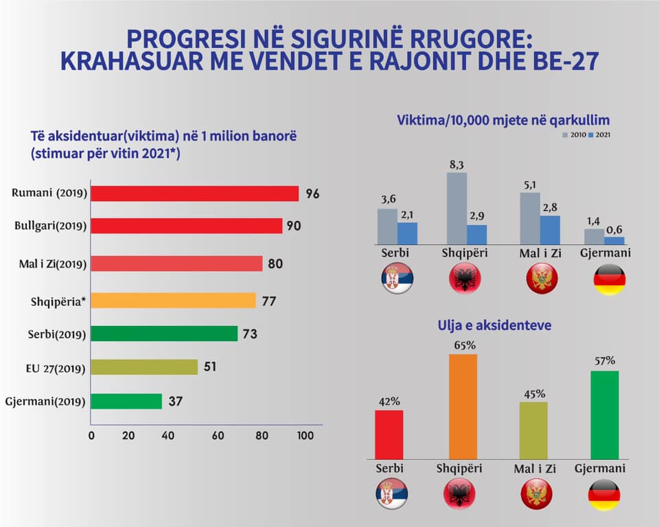 -59 qytetarë më pak të përfshirë në aksidente rrugore ose -7.6% më pak.