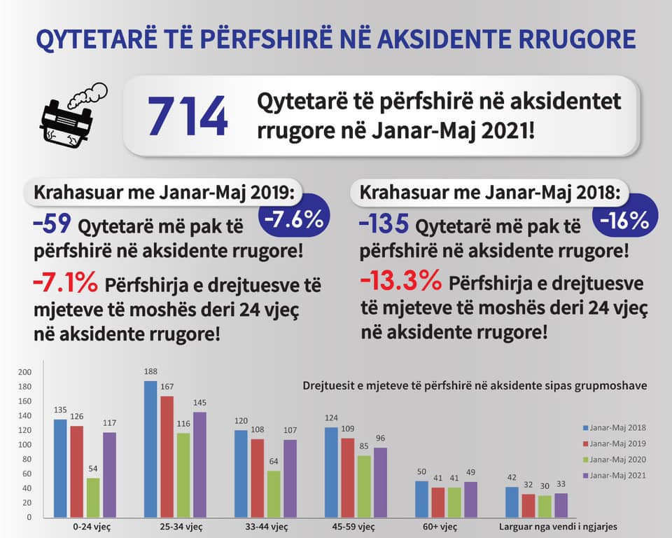 714 qytetarë të përfshirë në aksidente rrugore në 5 muajt e parë të vitit 2021.