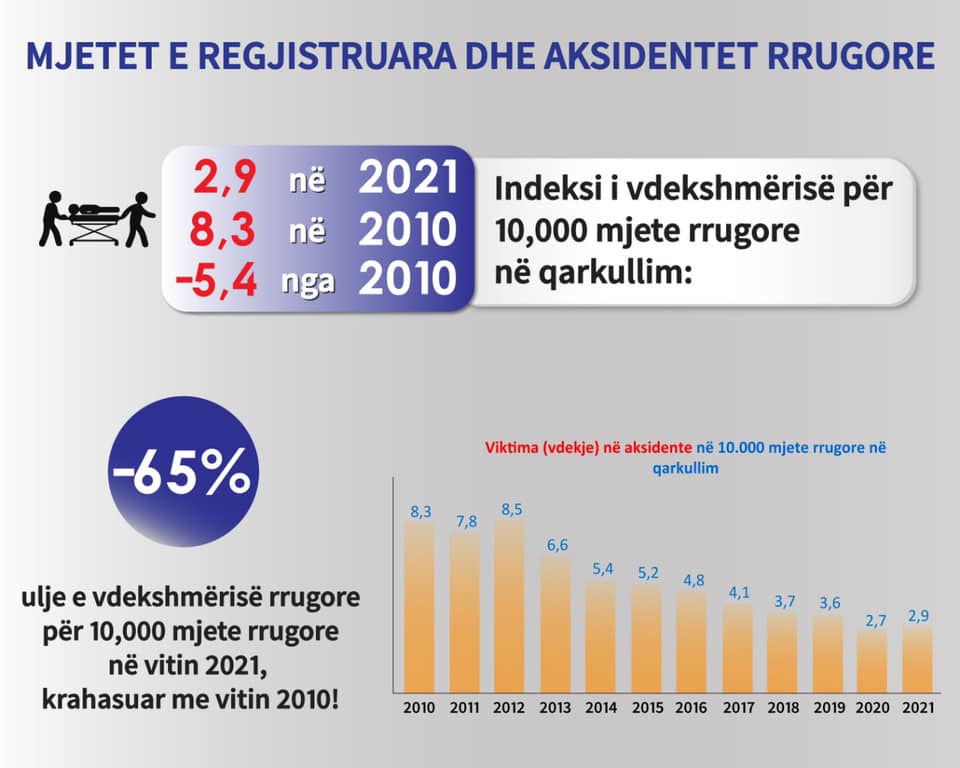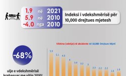 1.9 indeksi i vdekshmërisë (për 10,000 drejtues mjeti), rënie me -4 krahasuar me 2010 (kur indeksi ishte 5.9).