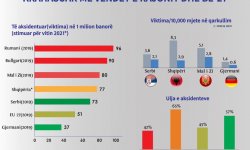 Fatalitete nga aksidente rrugore, për 1 milion banorë: