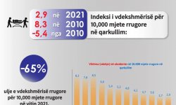 2.9 indeksi i vdekshmërisë (për 10,000 mjete),r ënie me -5.4 nga viti 2010 (kur indeksi ishte 8.3).