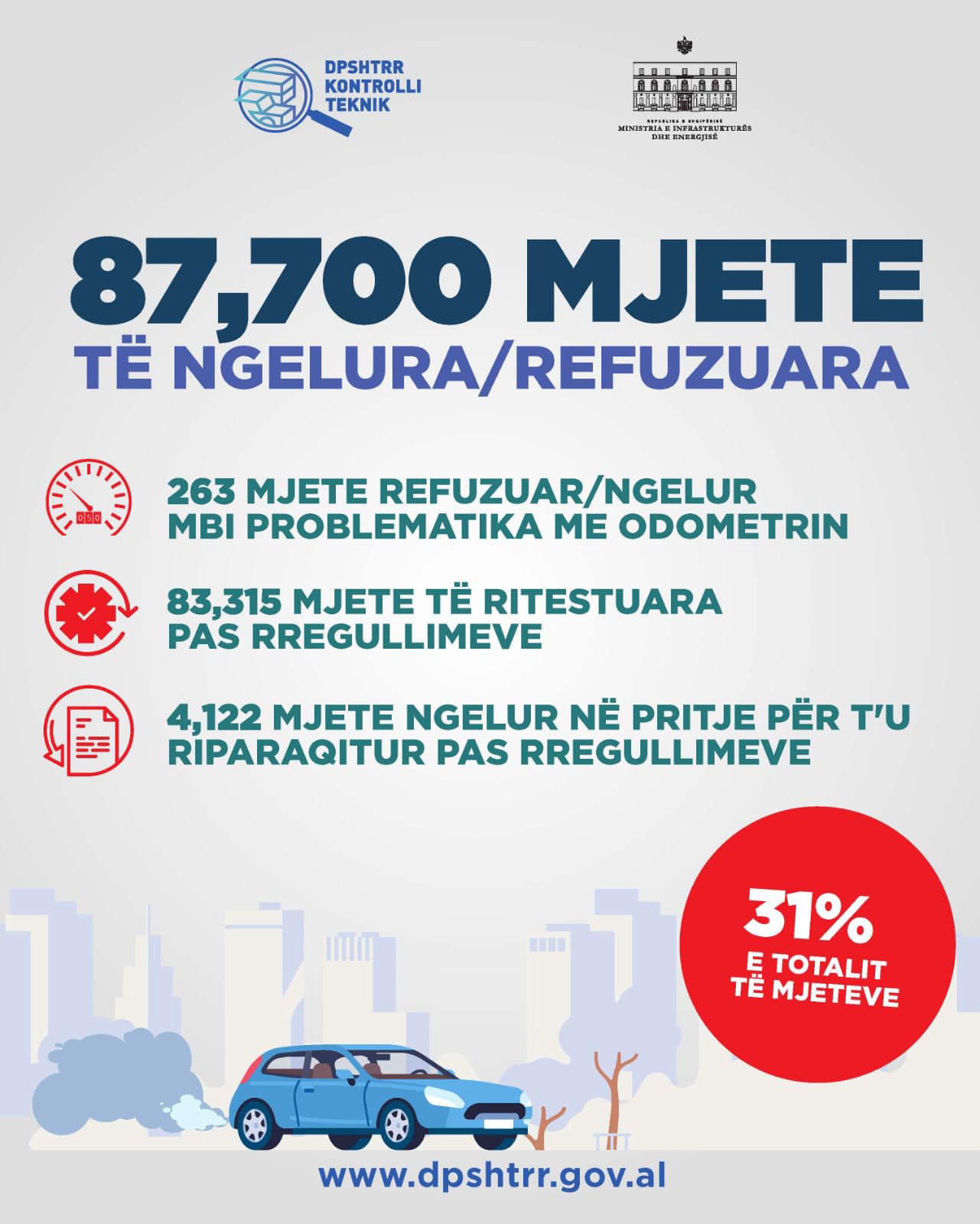 Nga totali i mjeteve të testuara, 31% e tyre nuk e kanë kaluar testimin ku arsyet më të shpeshta për ngelje janë: