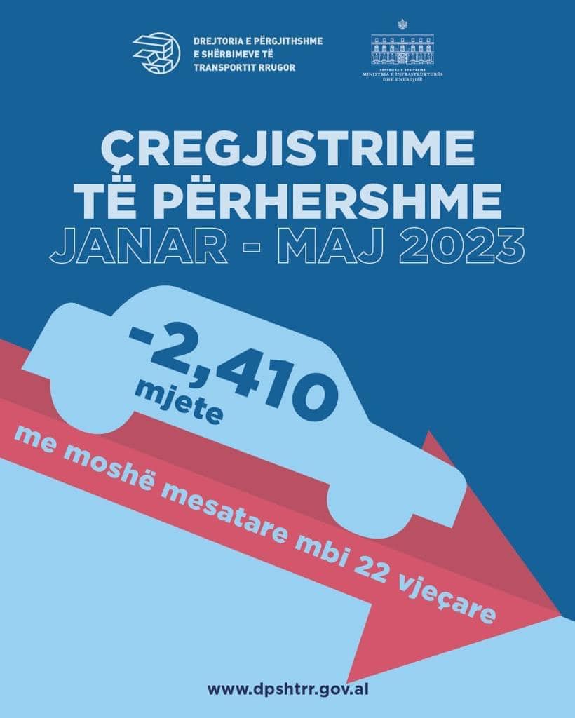 • 2,410 mjete me moshë mesatare 22-vjeçare janë çregjistruar plotësisht nga sistemi! Më shumë mjete më të reja në qarkullim e më pak mjete të vjetra!